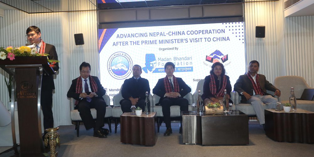 गिरिजाप्रसाद कोइराला फाउन्डेसन फर डेमोक्रेसी पिस एन्ड डेभलपमेन्ट, मदन भण्डारी फाउन्डेसन र नेपाल–चाइना फ्रेन्डसिप फोरमले संयुक्तरुपमा यहाँ आयोजना गरेको ‘एडभान्सिङ नेपाल–चाइना कोअपरेसन आफ्टर द प्राइमिनिस्टर्स भिजिट टु चाइना’ विषयक अन्तक्र्रियामा पूर्वपरराष्ट्रमन्त्री एवं गिरिजाप्रसाद कोइराला फाउण्डेसनका अध्यक्ष सुजाता कोइरालाले बिआरआई सम्झौता दुवै देशको हितमा रहेकाले समयमै कार्यान्वयन गरिनुपर्नेमा जोड दिए । उनले बिआरआई सम्झौताले नेपालको आर्थिक विकास, पूर्वाधार, शिक्षा, सञ्चारलगायत क्षेत्रमा सहयोग पुग्ने बताए ।