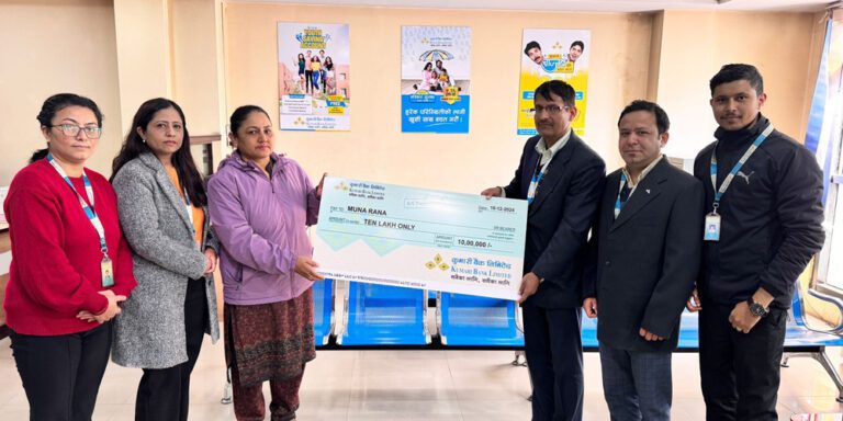 कुमारी बैंकद्वारा १० लाख रुपैयाँको बीमा रकम भुक्तानी