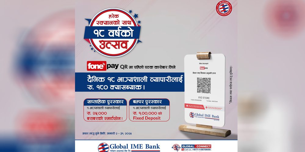 ग्लोबल आइएमई बैंकको फोनपे नेटवर्कमा आवद्ध मर्चेन्टलाई विशेष उपहार योजना