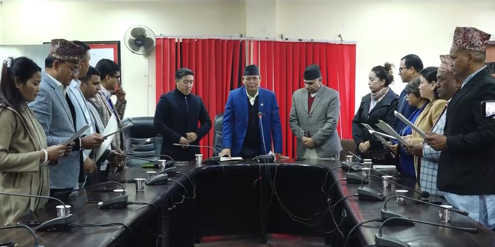 काठमाडौँ । राष्ट्रिय खेलकुद परिषद् (राखेप) मा नवनियुक्त हुनुभएका आठ बोर्ड सदस्यहरुले सपथ ग्रहण गरेका छन् । उनीहरुलाई सिंहदरबारस्थित खेलकुद मन्त्रालयमा आयोजित एक कार्यक्रममा युवा तथा खेलकुदमन्त्री तेजुलाल चौधरीले सपथ ग्रहण गराएका हुन् ।