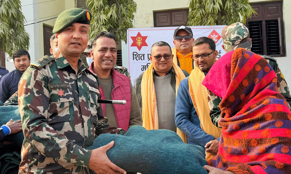 दुवै बस्तीका एक सय २३ परिवारलाई सेनाको परिकौली (महोत्तरी) स्थित गोरखनाथ गण ब्यारेकले ओढ्ने मण्डी (ऊनी कम्बल) शनिबार वितरण गरेको हो । शीतलहरको यो राहत पाउने उनीहरु अतिविपन्न मुसहर र डोम समुदायका परिवार हुन् ।