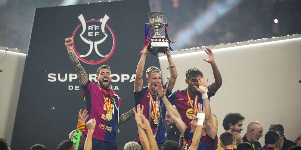 काठमाडौं । रियल मड्रिडलाई हराउँदै बार्सिलोनाले स्पेनिस सुपर कपको उपाधि जितेको छ । आइतबार राति साउदी अरेबियाको किङ अब्दुल्लाह स्पोर्टस् सिटीमा भएको फाइनल खेलमा बार्सिलोनाले रियललाई ५–२ गोल अन्तरले हराउँदै १५औँ पटक उपाधि जितेको हो ।