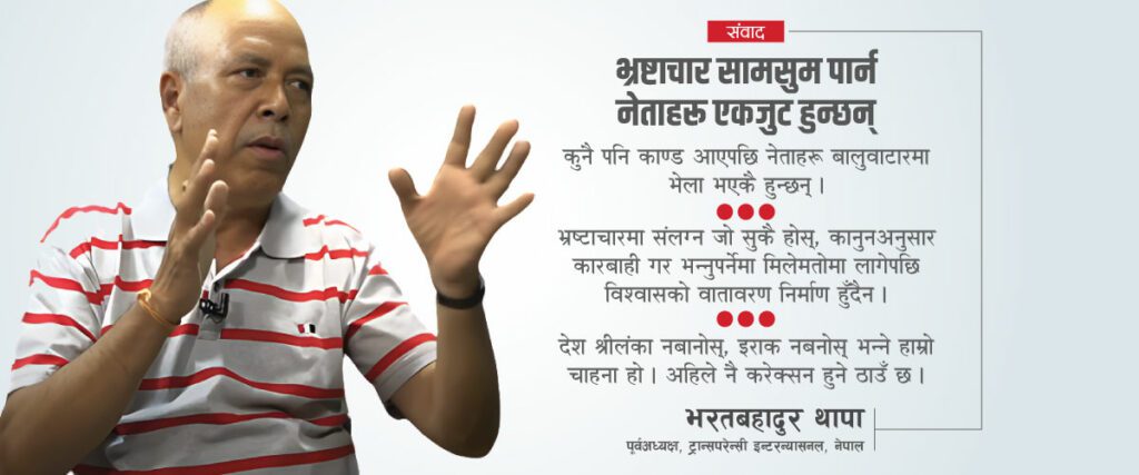 भूमिसम्बन्धी अध्यादेशभित्रको रहस्य, सरकारको कार्यशैली, नीतिगत भ्रष्टाचार, भ्रष्टाचार न्यूनीकरण हुन नसक्नुका कारण आदि विषयमा ट्रान्सपरेन्सी नेपालका पूर्वअध्यक्ष भरतबहादुर थापासँग दृष्टिले गरेको कुराकानीको सम्पादित अंश–