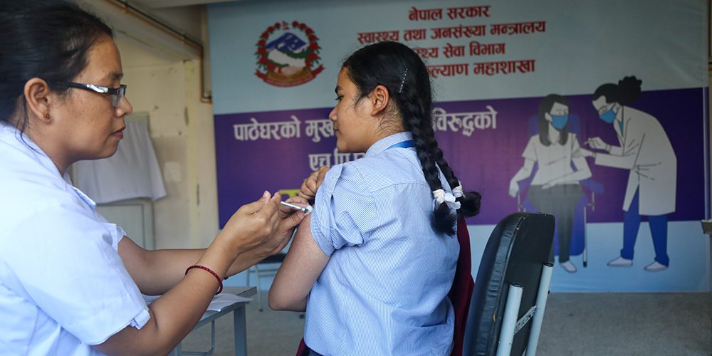 स्वास्थ्य तथा जनसंख्यामन्त्री प्रदीप पौडेलले यो खोप नियमित खोप तालिकामा समावेश गरिएको जानकारी दिए । उनले भने, ‘आगामी वर्षदेखि कक्षा ६ का छात्राहरू र विद्यालयबाहिर रहेका १० वर्षका बालिकालाई नियमित खोपमार्फत हरेक वर्ष एचपीभी खोप दिनेछौँ ।’