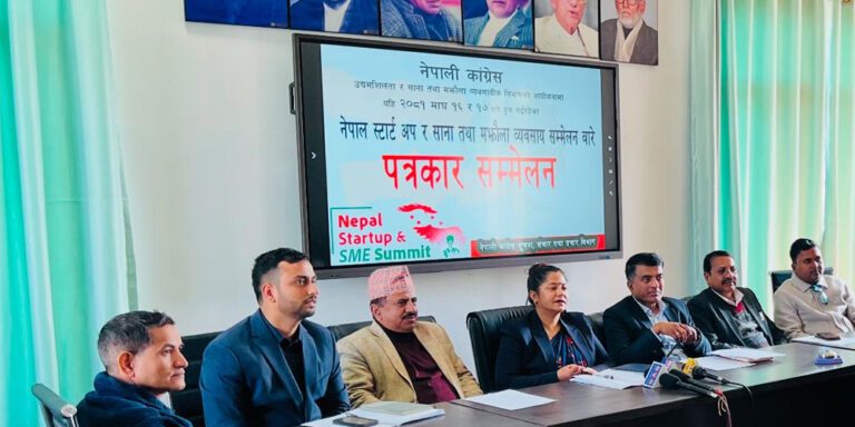 काठमाडौँ । साना तथा मझौला व्यवसायीले उत्पादन गरेका वस्तुको बजारीकरण तथा उद्यमशीलता विकास गर्ने उद्देश्यले नेपाली कांग्रेस उद्यमशीलता र साना तथा मझौला व्यवसायी विभागले यही माघ १६ र १७ गते ‘नेपाल स्टार्ट अप साना तथा मझौला सम्मेलन’ गर्ने भएको छ ।