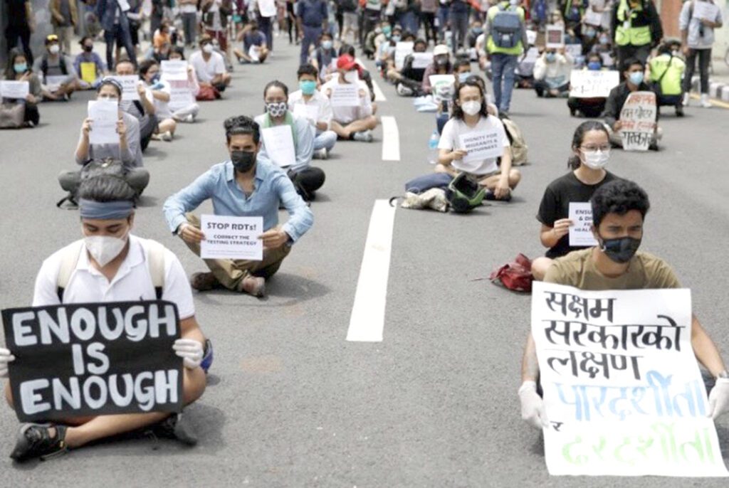 प्रदर्शनको कारण केलाउन कुनै गाह्रो थिएन । जबकि, उनीहरुले बोकेको प्लेकार्डबाटै स्पष्ट उद्देश्य झल्किन्थ्यो । प्रदर्शनका क्रममा युवाहरुले विषेशगरी चार वटा विषय उठाएका छन् । पहिलो, कोभिड–१९ पहिचानका लागि पीसीआर परीक्षण दायरा बढाउनुपर्ने । दोस्रो, तत्काल आरडीटी परीक्षण बन्द गर्नुपर्ने । तेस्रो, कोभिड नियन्त्रणका नाममा भएको करिब १० अर्ब रुपैयाँको हिसाबकिताब सार्वजनिक हुनुपर्ने र त्यसमा भएको भनिएको अनियमितता छानबिन गर्नुपर्ने र चौथो, क्वारेन्टाइनलाई व्यवस्थित गरी त्यहाँ रहेकालाई न्यूनतम मानवीय व्यवहार हुनुपर्ने ।