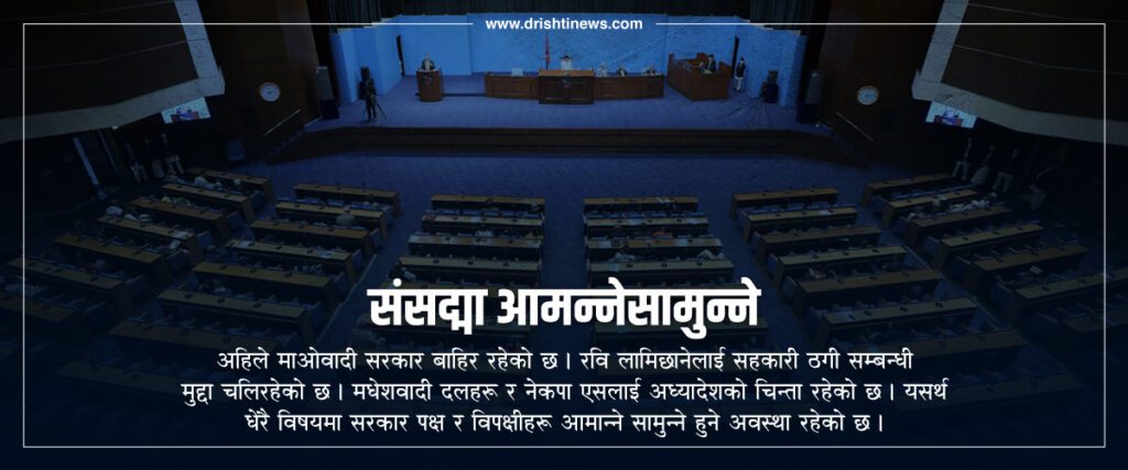 अहिले संसद्मा धेरै कानुन बनाउन दबाब परिरहेको छ । तर कैयौँ राष्ट्रिय र जनसरोकारका मुद्दामा सत्तापक्ष र विपक्षी दलहरू आमने–सामने हुने अवस्था पनि सिर्जना भएको छ । अहिले माओवादी सरकार बाहिर रहेको छ । रवि लामिछानेलाई सहकारी ठगी सम्बन्धी मुद्दा चलिरहेको छ । मधेशवादी दलहरु र नेकपा एसलाई अध्यादेशको चिन्ता रहेको छ । यसर्थ धेरै विषयमा सरकार पक्ष र विपक्षीहरू आमान्ने सामुन्ने हुने अवस्था रहेको छ ।