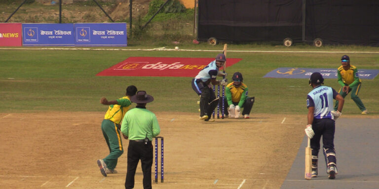यस्तै विनोद भण्डारीले ५० बल खेल्ने क्रममा ५ चौका प्रहार गरी अविजित ४७ रन बनाए । तिर्तराज दासले ३६, विवेक यादवले ३० र कुशल मल्लले २६ रन बनाए ।