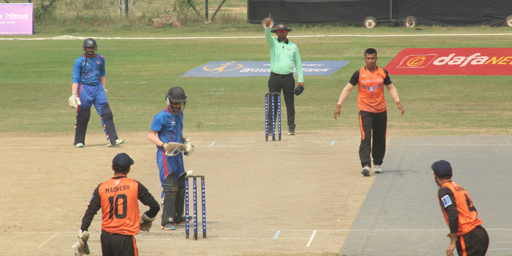रुपन्देही । भैरहवामा जारी प्रधानमन्त्री कप पुरुष राष्ट्रिय क्रिकेट प्रतियोगितामा मधेस प्रदेशले कोशी प्रदेशलाई १६५ रनको फराकिलो अन्तरले पराजित गरेको छ । जारी प्रतियोगितामा मधेसको यो पहिलो जित हो भने कोशीको यो दोस्रो हार हो ।