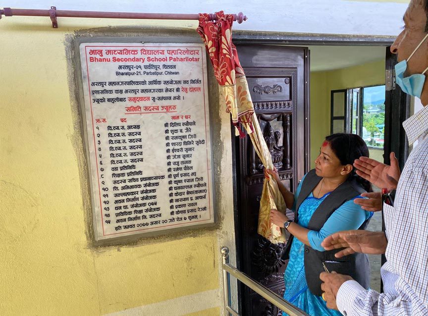 बुधबार पश्चिम चितवनको भरतपुर महानगरपालिका वडा नम्बर २१ पहारीलोटारमा रहेको भानु माध्यमिक विद्यालयमा प्रशासनिक भवन तथा पुस्तकालय भवनको उद्घाटन गर्दै सो कुरा बताउनुभएको हो । भरतपुर महानगरपालिका, सामाजिक विकास मन्त्रालय र डीएलपीआईको एक करोड ४६ लाख रुपैयाँको लागतमा चार कोठे आधुनिक प्रशासनिक भवन र पुस्तकालय निर्माण सम्पन्न भएको थियो ।