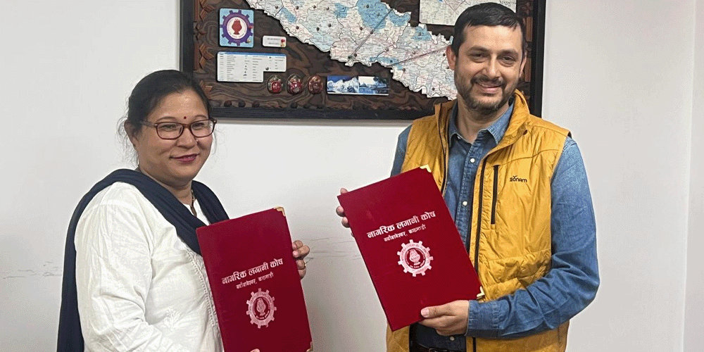 काठमाडौं । नागरिक लगानी कोष र सभापोखरी हाइड्रोपावर लिमिटेडबीच सेयर प्रत्याभूति गर्ने सम्झौता भएको छ। बुधबार भएको सम्झौतामा कोषकी निमित्त कार्यकारी निर्देशक शोभा श्रेष्ठ सुवेदी र सभापोखरी हाइड्रोका प्रबन्ध निर्देशक श्रीराम देवकोटाले हस्ताक्षर गरेका छन्।