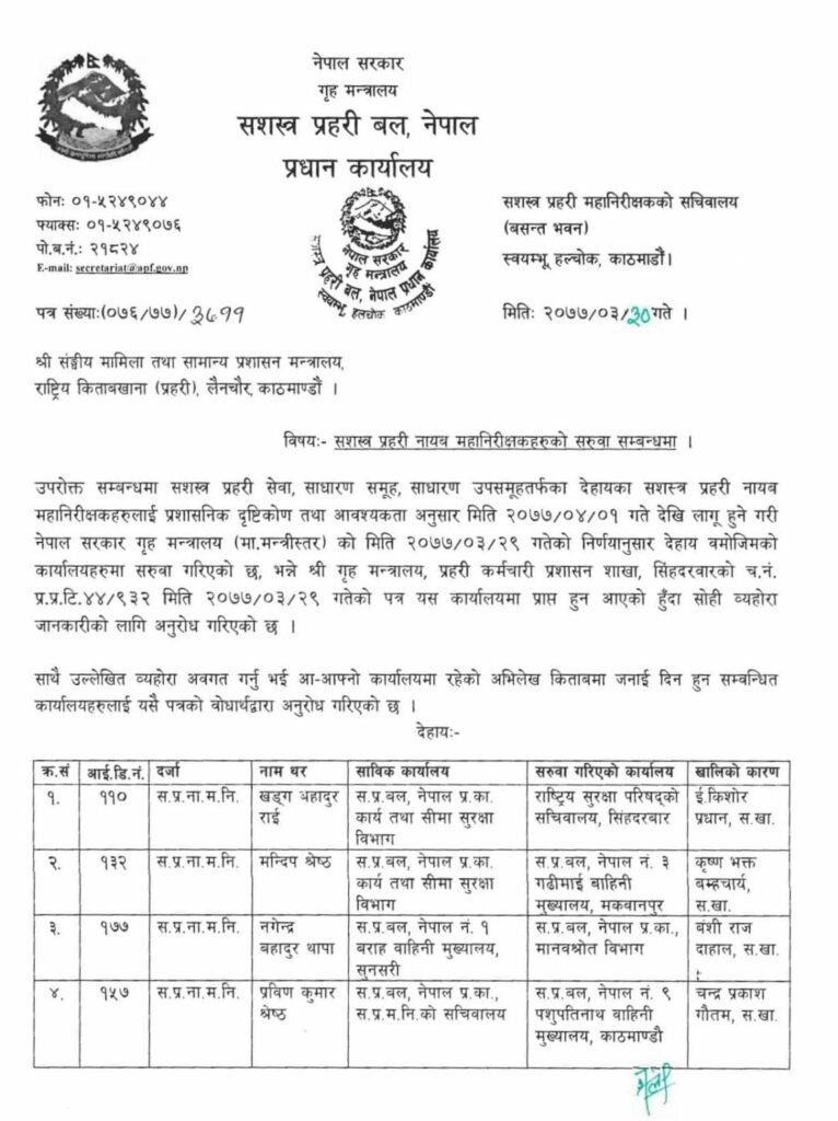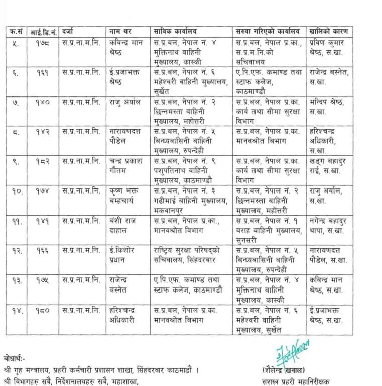 सशस्त्र प्रहरी बलका १४ डिआईजीको सरुवा भएको छ । सरुवा अनुसार आठ वटै बाहिनीका प्रमुखहरु फेरिएका छन् ।