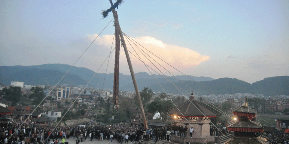 भक्तपुर । भक्तपुरको प्रसिद्घ बिस्का जात्राको पाँचौ दिन आज भेलुखेलस्थित यसींँख्योमा ५५ हात लामो यसीद्यः (लिङ्गो) ढाल्ने जात्रा सम्पन्न भएको छ ।