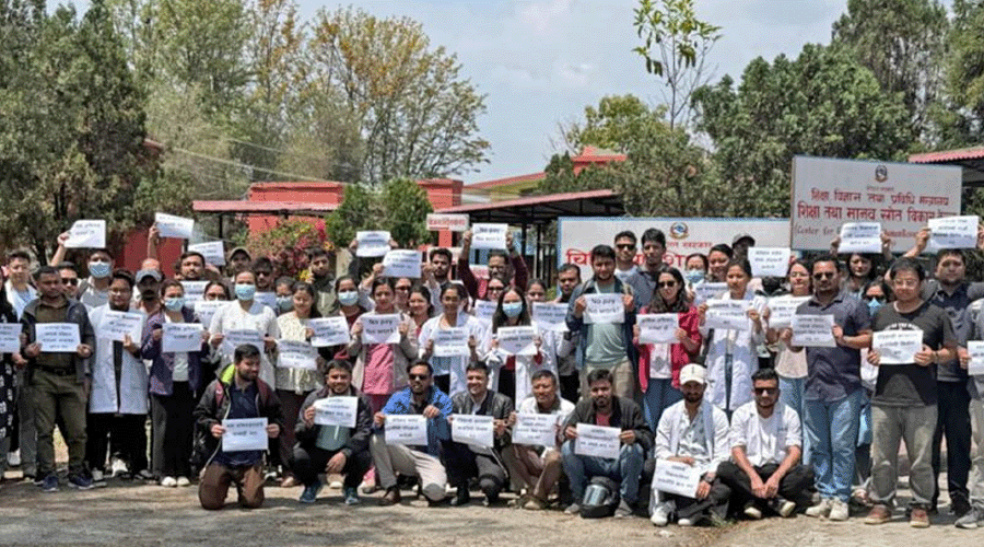 काठमाडौं । चैत्र २१ गतेदेखि आन्दोलनरत आवासीय चिकित्सकहरूले शुक्रवार चिकित्सा शिक्षा आयोग अगाडी धर्ना दिए। उनीहरूले आयोगको १८ औँ बैठकमा एमबीबीएस र बीडीएसको सिट तथा शुल्क बढाउन सिफारिस गरेको कार्यदल खारेजको माग गरेका हुन् ।