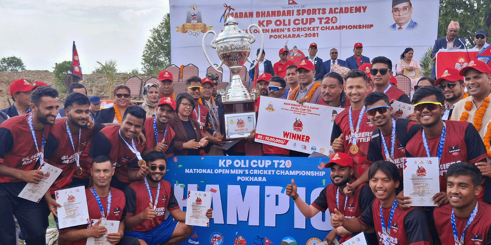 कास्की । पोखरामा सञ्चालन भएको दोस्रो संस्करणको ‘केपी ओली कप’ टी–२० राष्ट्रिय खुला पुरुष क्रिकेट प्रतियोगिताको उपाधि गण्डकी हिरोजले जितेको छ ।