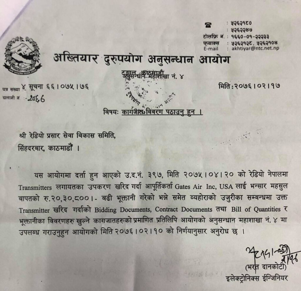 नायब कार्यकारी निर्देशक केसी र पूर्व कार्यकारी निर्देशक कार्की मिलेर खुमलटारको जग्गा भाडामा दिइएको विषयमा समेत मन्त्रालयले छानबिन अगाडि बढाएको छ । स्मरणरहोस्, पूर्व कार्यकारी निर्देशक कार्कीलाई ७ लाख ७७ हजार ४९ रुपैयाँ सवारी साधनवापत भुक्तानी दिन केसीले २०७३।१।३१ गते टिप्पणी उठाएका थिए । अहिले रेडियोका एकथरि कर्मचारी यिनै केसीलाई बोकेर बालुवाटार कुदिरहेका छन् ।