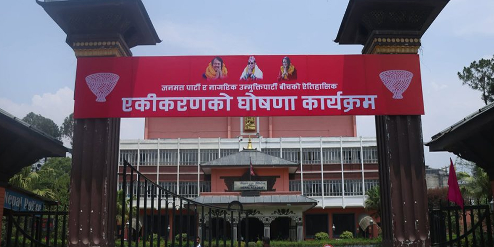 काठमाडौंको कमलादीस्थित नेपाल प्रज्ञा प्रतिष्ठानको हलमा पाार्टी एकता घोषणा कार्यक्रम राखिएको थियो ।