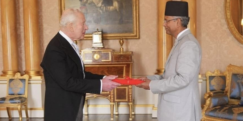 काठमाडौं । संयुक्त अधिराज्यका लागि नेपालका राजदूत चन्द्रकुमार घिमिरेले राजा चाल्र्स तृतीयसमक्ष आफ्नो ओहोदाको प्रमाणपत्र प्रस्तुत गरेका छन् । बकिङ्घम राजप्रासादमा बिहीबार अपराह्न आयोजित विशेष समारोहमा उनले आफ्नो ओहोदाको प्रमाणपत्र प्रस्तुत गरेका हुन् ।