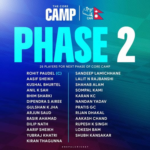 यसअघि काठमाडौंको मूलपानीमा सम्पन्न कोर क्याम्पबाट २८ खेलाडी बाहिरिएका छन् । दोस्रो चरणको क्याम्पमा समावेश खेलाडीहरू यूके टूरका लागि अन्तिम छनोटको दाबेदार मानिएका छन् ।