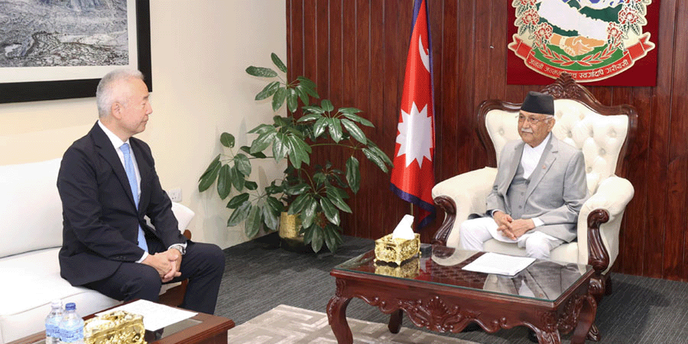 काठमाडौं । प्रधानमन्त्री केपी शर्मा ओलीसँग नेपालका लागि जापानका राजदूत माइदा तोरुले शिष्टाचार भेट गरेका छन् । प्रधानमन्त्री निवास, बालुवाटारमा भएको भेटमा दुईपक्षीय सम्बन्ध र हितका विविध विषयका साथै आपसी सहयोग आदानप्रदानलाई अभिवृद्धि गर्ने सम्बन्धमा छलफल भएको छ ।