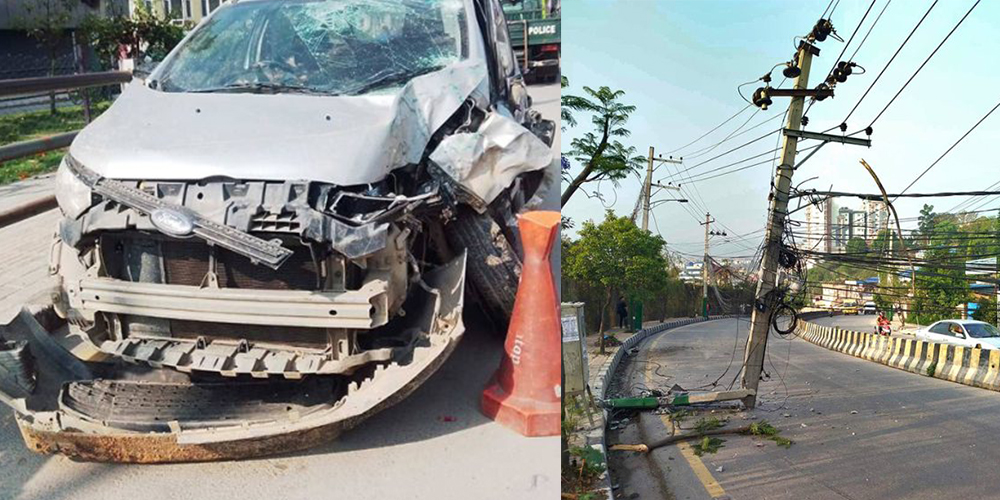 प्रहरीका अनुसार गएराति बा१५च ७६५२ नम्बरको कार बिजुलीको पोलमा ठोक्किएको थियो । मापसे गरी सवारी चलाउँदा कार दुर्घटना भएको प्रहरी स्रोतले बताएको छ । कारको अगाडिको भाग क्षतिग्रस्त भएको छ । दुर्घटनाको प्रकृति हेर्दा कार तीव्र गतिमा भएको अनुमान गरिएको प्रहरीले जनाएको छ ।