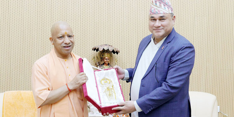 काठमाडौं । भारत भ्रमणमा रहेका सुदूरपश्चिम प्रदेशका मुख्यमन्त्री कमलबहादुर शाहले भारतको उत्तर प्रदेशका मुख्यमन्त्री योगी आदित्यनाथसँग शिष्टाचार भेट गरेका छन् ।