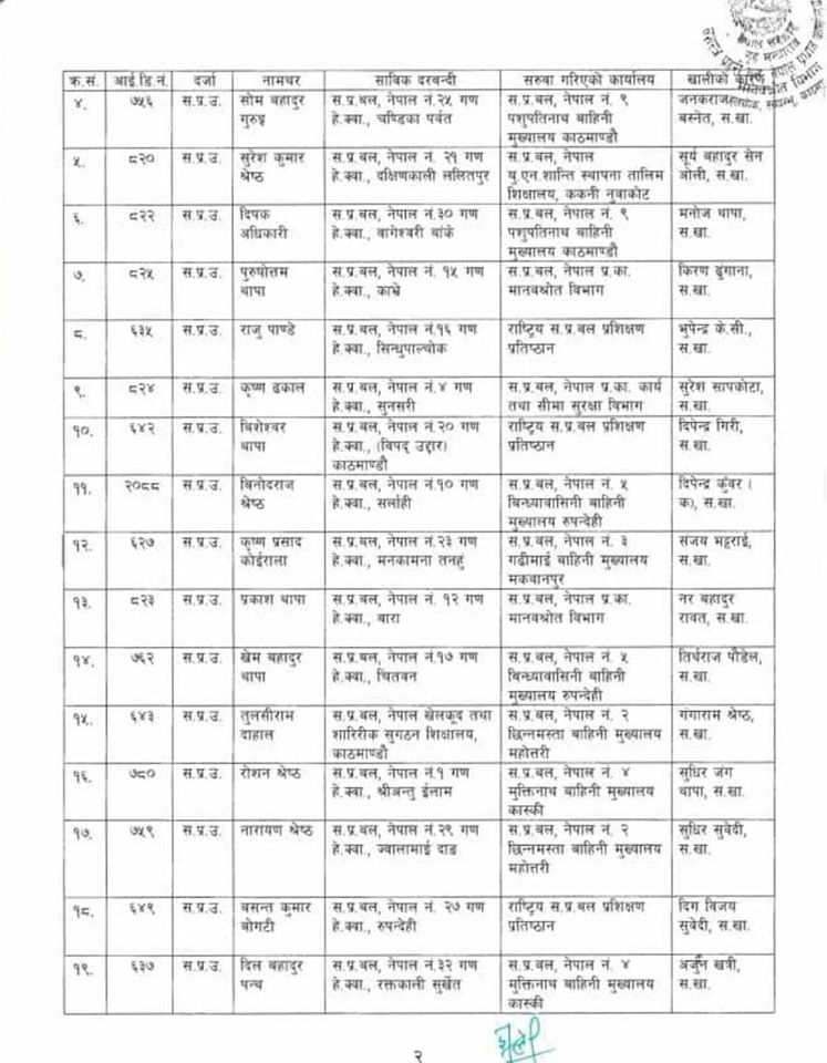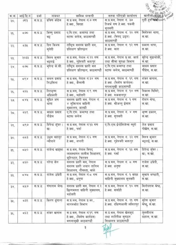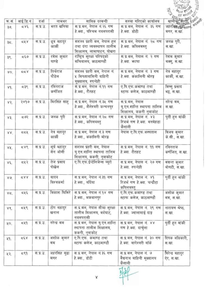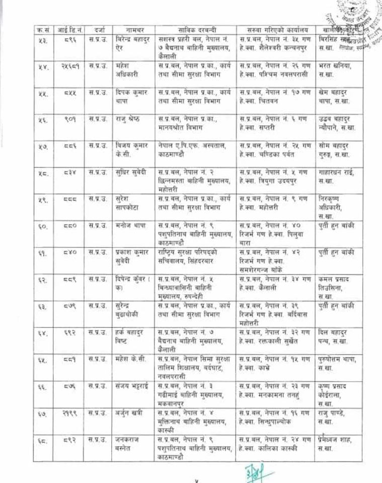७१ जना एसपीको सरुवामा ४२ वटा गणपति फेरिएका छन् । जसमध्ये ३९ जना सि सं २ अर्थात दोस्रो ब्याचका एसपीहरु छन् ।