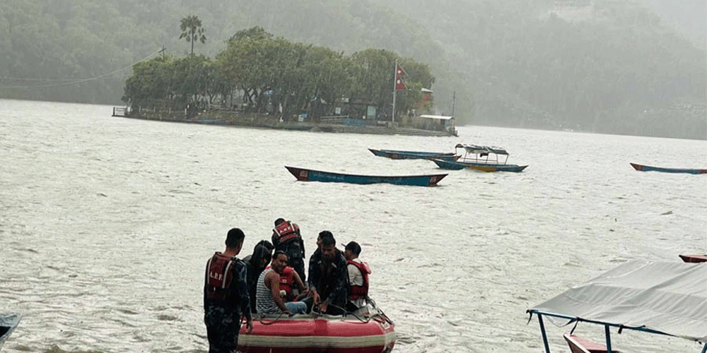 काठमाडौं । पोखराको फेवातालमा डुङ्गा सयरका क्रममा एक्कासि आएको हावाहुरी र पानीका कारण फसेका ८ जनाको सफल उद्धार गरिएको छ । शनिबार साँझ डुङ्गा चढेर फेवातालको सयरमा निस्किएका ती पर्यटकहरू अचानक मौसम खराब भएपछि तालमै अलपत्र परेका थिए ।