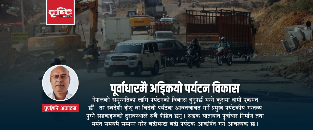 नेपालको समुन्नतिका लागि पर्यटनको विकास हुनुपर्छ भन्ने कुरामा हामी एकमत छौँ । तर स्वदेशी होस् वा विदेशी पर्यटक आवतजावत गर्ने प्रमुख पर्यटकीय गन्तव्य पुग्ने सडकहरूको दुरावस्थाले सबै पीडित छन् ।