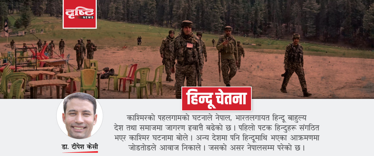 यो यथार्थबीच काश्मिरको आतंकवादी हमलाले नेपाली राजनीतिमा धर्मको मुद्दालाई अझ बल दिन पुगेको छ । नखुलेकाहरू खुल्न थालेका छन् र खुलेकाहरू झन् आक्रामक रूपमा प्रस्तुत हुन थालेका छन् । धर्मलाई राजनीतिबाट अलग राख्नुपर्छ भन्नेहरू नै धर्मलाई राजनीतिक मुद्दा बनाउन थालेका छन् । जसमा राजनीतिक दलका नेता देखि पूर्वराजासम्म देखिए ।