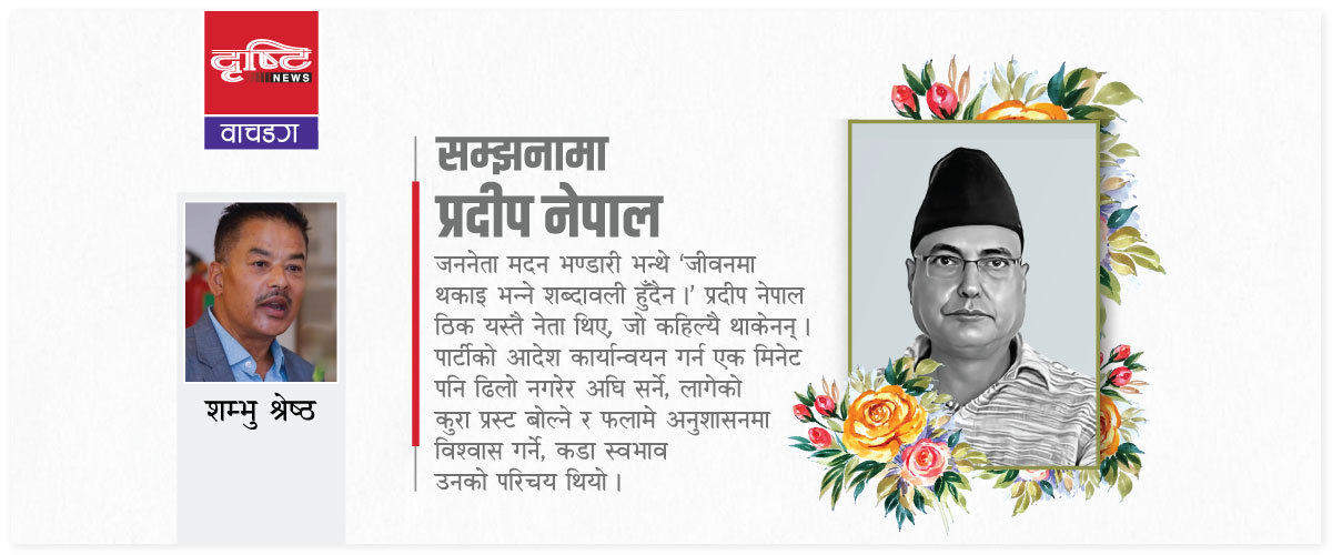 जननेता मदन भण्डारी भन्थे ‘जीवनमा थकाइ भन्ने शब्दावली हुँदैन ।’ प्रदीप नेपाल ठिक यस्तै नेता थिए, जो कहिल्यै थाकेनन् । पार्टीको आदेश कार्यान्वयन गर्न एक मिनेट पनि ढिलो नगरेर अघि सर्ने, लागेको कुरा प्रस्ट बोल्ने र फलामे अनुशासनमा विश्वास गर्ने, कडा स्वभाव उनको परिचय थियो