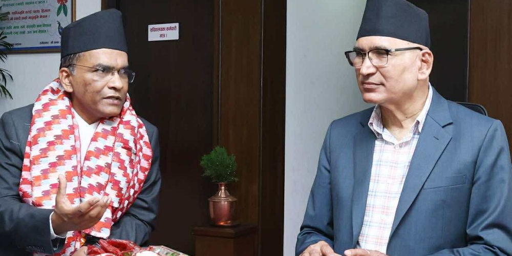 काठमाडौं । अर्थमन्त्री विष्णुप्रसाद पौडेललाई नेपाल राष्ट्र बैंकका नवनियुक्त गभर्नर डा. विश्व पौडेलले भेट गरेका छन् । आज बिहान अर्थ मन्त्रालय पुगी नवनियुक्त गभर्नर पौडेलले अर्थमन्त्री पौडेललाई भेट गरेका हुन् ।