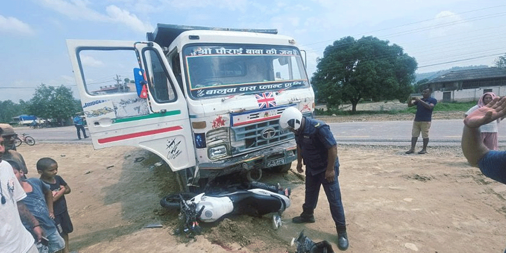 बिहान करिब ८ बजे पूर्वतर्फ जाँदै गरेको बालुवा लोड टिपरले विपरीत दिशाबाट आइरहेको मोटरसाइकललाई ठक्कर दिँदा दुर्घटना भएको हो । मोटरसाइकलमा सवार दुई जना गम्भीर घाइते भएका थिए । घाइतेहरूलाई तत्काल हरिवनस्थित नमुना अस्पतालमा पुर्याइएको थियो, जहाँबाट थप उपचारका लागि बारास्थित एलएस न्युरो अस्पताल रिफर गरिएको थियो ।