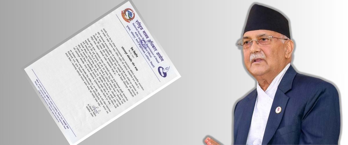 काठमाडौं । राष्ट्रिय मानव अधिकार आयोगले प्रधानमन्त्री केपी शर्मा ओलीले आइतबार दिएको अभिव्यक्तिप्रति गम्भीर आपत्ति जनाएको छ । आयोगले यस्ता अभिव्यक्तिहरू मानव अधिकारका मूल्यमान्यता र विधिको शासनविपरीत हुने स्पष्ट पारेको छ ।
