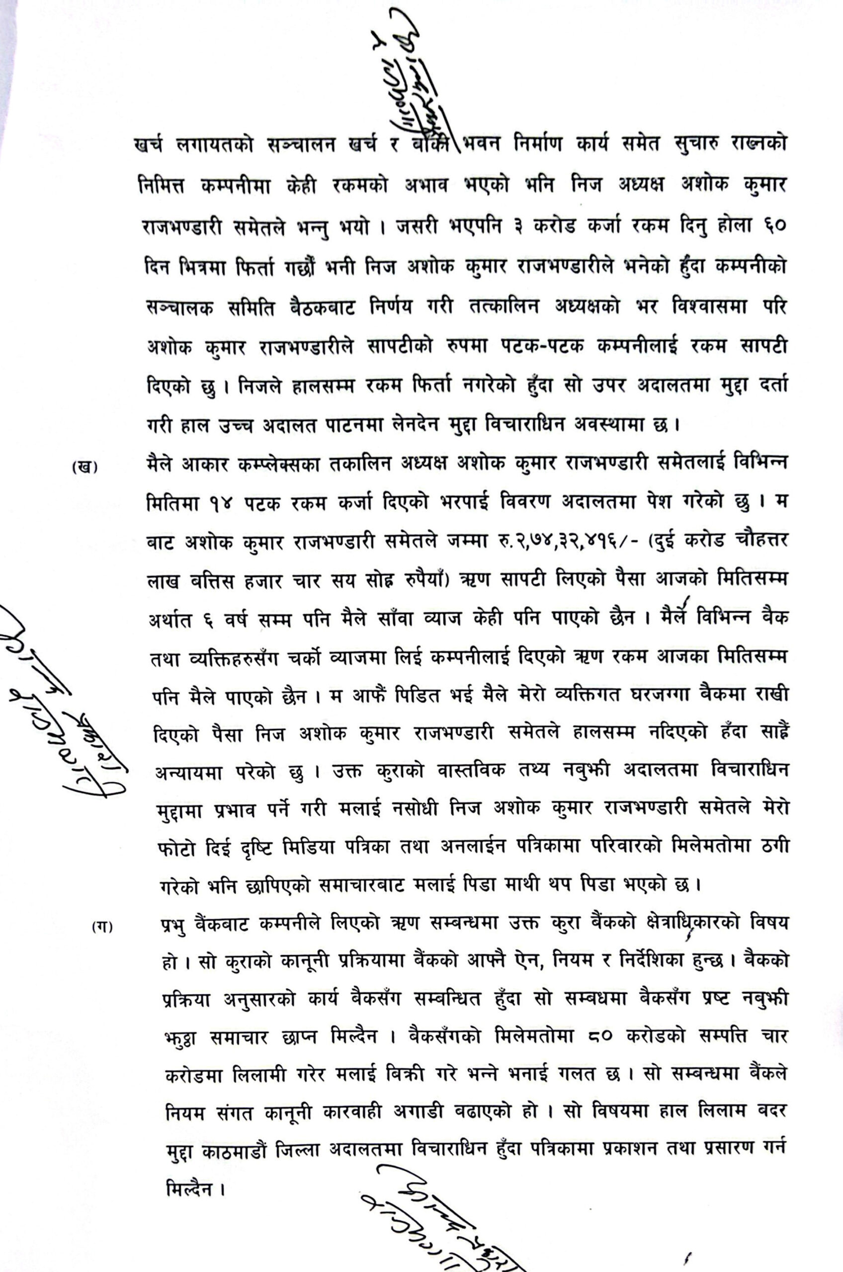 यस्तो छ आनन्द प्रकाश राजभण्डारीको खण्डन पत्र
