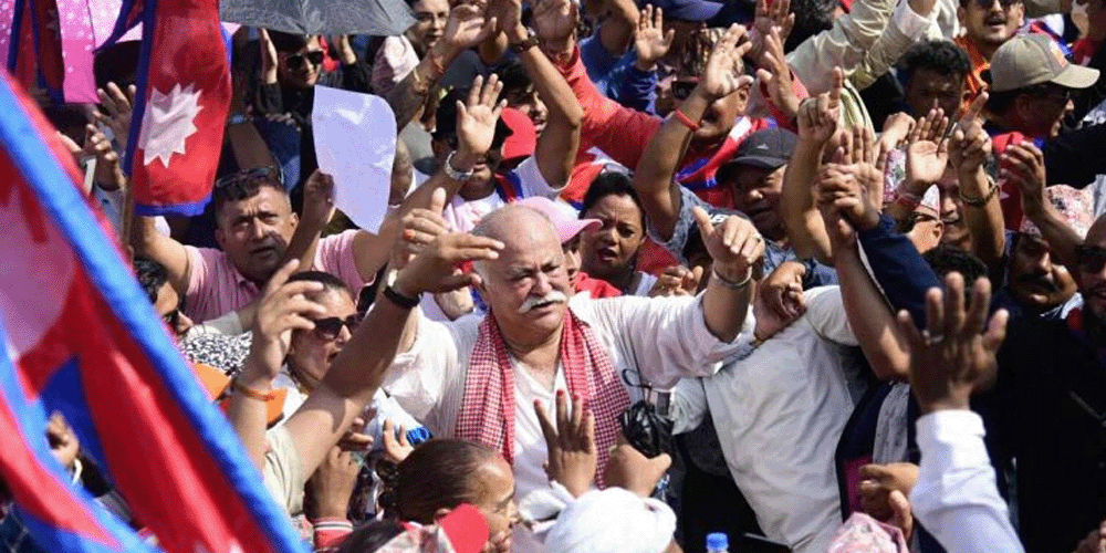 काठमाडौं । राजसंस्था पुनर्स्थापना र हिन्दू राज्यको माग राख्दै राजावादीहरूले शनिवार पनि काठमाडौंमा आन्दोलनलाई निरन्तरता दिएका छन्। पूर्वनिर्धारित कार्यतालिका अनुसार, शनिवार नारायणहिटी दरबार परिसरमा प्रदर्शन गर्ने योजना भए पनि शुक्रवार साँझ उक्त क्षेत्रलाई सरकारले निषेधित क्षेत्र घोषणा गरेपछि आन्दोलनको स्थान परिवर्तन भएको थियो । फलस्वरूप, राजावादीहरूले शान्तिबाटिकाबाट प्रदर्शन सुरु गरे ।