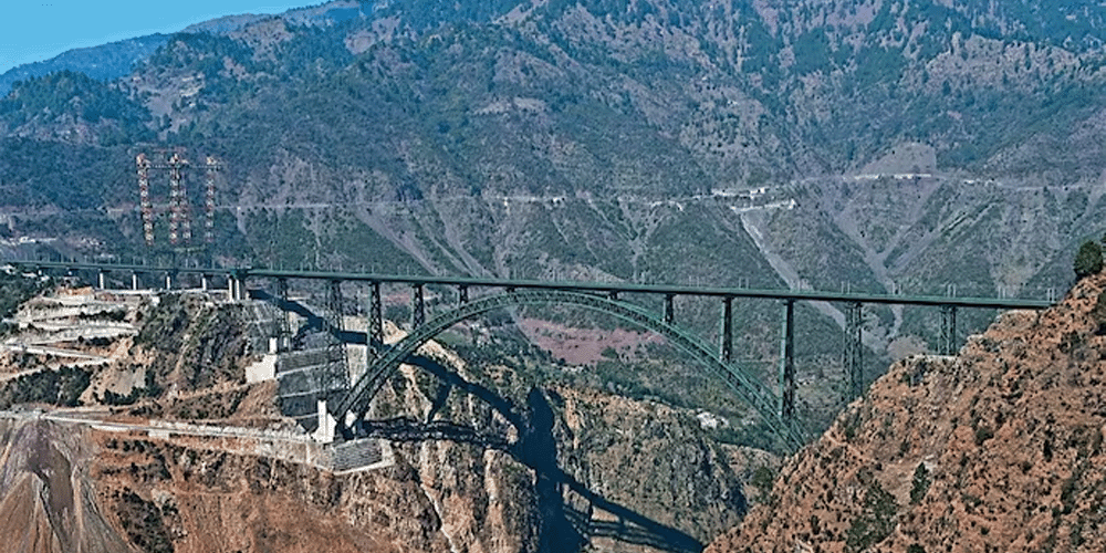 चेनाब नदीमाथि ३५९ मिटर (१,१७८ फिट) उचाइमा निर्मित यो पुल, पेरिसको आइफल टावरभन्दा ३५ मिटर अग्लो छ । १,३१५ मिटर लामो यो स्टिल र कंक्रिटको आर्क ब्रिज उद्घमपुर-श्रीनगर-बरमुल्ला रेल लिङ्क परियोजनाको हिस्सा हो । यो परियोजना ४२ वर्षअघि सुरु भएको थियो र यसले कश्मीरलाई भारतको अन्य भागसँग वर्षभरि निर्बाध रेल सम्पर्क प्रदान गर्नेछ ।