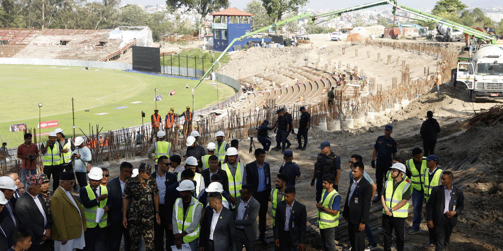 काठमाडौं । प्रधानमन्त्री केपी शर्मा ओलीले कीर्तिपुरस्थित निर्माणाधीन त्रिभुवन विश्वविद्यालय (त्रिवि) क्रिकेट रङ्गशालाको निरीक्षण गरेका छन् । अनेरास्ववियुको महाधिवेशनका लागि कीर्तिपुर पुगेका ओलीले फर्किने क्रममा रङ्गशालाको प्रगति अवलोकन गरेका हुन् ।