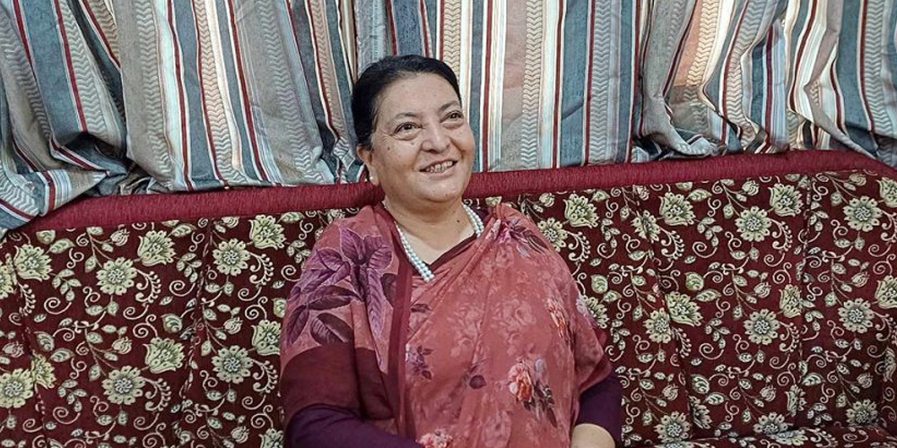 यस्तै, तपाईं सक्रिय राजनीतिमा आउन लागेको हो ? भन्ने प्रश्नमा उनले भनिन्, ‘म त्यस्तो व्यक्ति परेँ कि म जहाँ जन्मे, हुर्कें र यो स्थानमा पुगेँ । त्यो समाजबाट आजको मितिसम्म आउँदाखेरि एउटै लाइनमा म छु । तपाईंहरुले यसो हेर्नुभयो भने बुझ्नु हुन्छ । पहिलेदेखि नै वामपन्थी आन्दोलनमा लागियो । त्यसको पनि एउटा खास धार, एउटा संगठन हामी आयौं । अहिलेसम्म पनि, म राष्ट्रपति हुँदासम्म पनि नेकपा एमालेले प्रस्ताव गरेर अरु वापमन्थी र अरु क्षेत्रीय पार्टीहरुले समेत समर्थन गरेर म देशको राष्ट्रपति भएको हुँ ।’