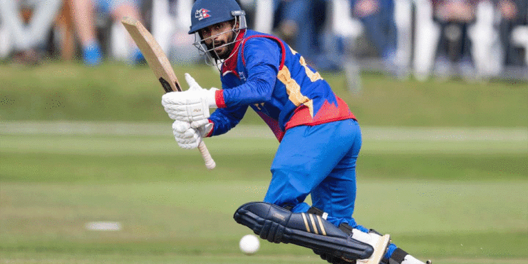 नेपालका लागि मध्यक्रमका ब्याटर आरिफ शेखले ८४ रनको शानदार पारी खेले । उनले ८५ बलमा ७ चौका र २ छक्का प्रहार ग रे। पावरप्लेमा दुवै ओपनर गुमाउँदा नेपालले ३७ रन मात्र बनाएको थियो । तेस्रो विकेटका लागि कप्तान रोहितकुमार पौडेल र भीम सार्कीले ५१ रनको अर्धशतकीय साझेदारी गरे । दुवैले समान ३५/३५ रन जोडे। दीपेन्द्रसिंह ऐरीले १६, बसिर अहमद र करण केसीले समान ११/११ रन बनाए ।