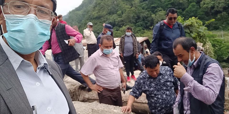 मन्त्री गुरुङद्वारा दोलखाको बाढीपहिरो प्रभावित क्षेत्रको अवलोकन