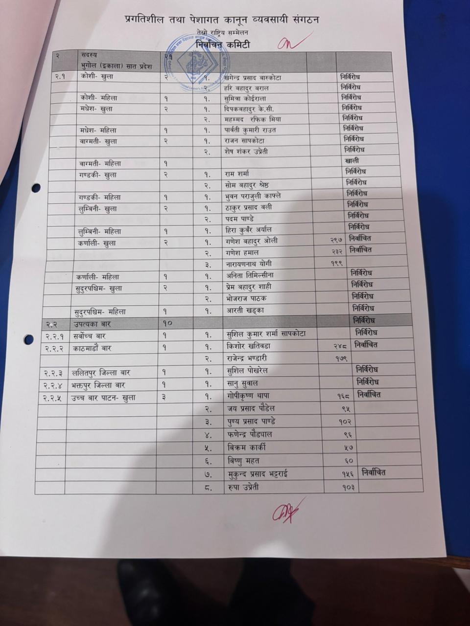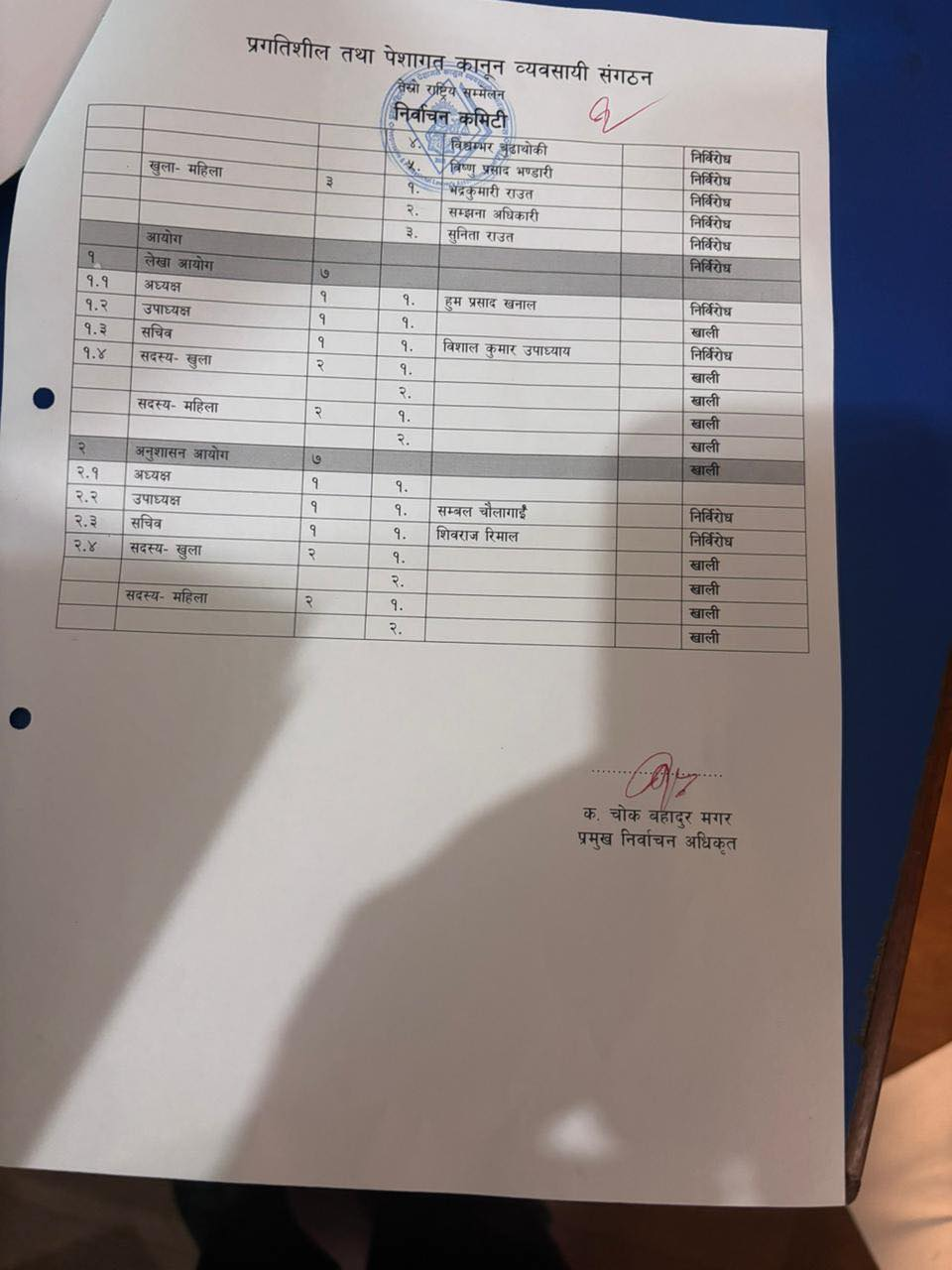 सचिवमा मुकुन्द प्रसाद अधिकारी र अनिता गुरुङ विजयी हुँदा कोषाध्यक्षमा कुमारप्रसाद घिमिरे निर्वाचित भएका छन् ।