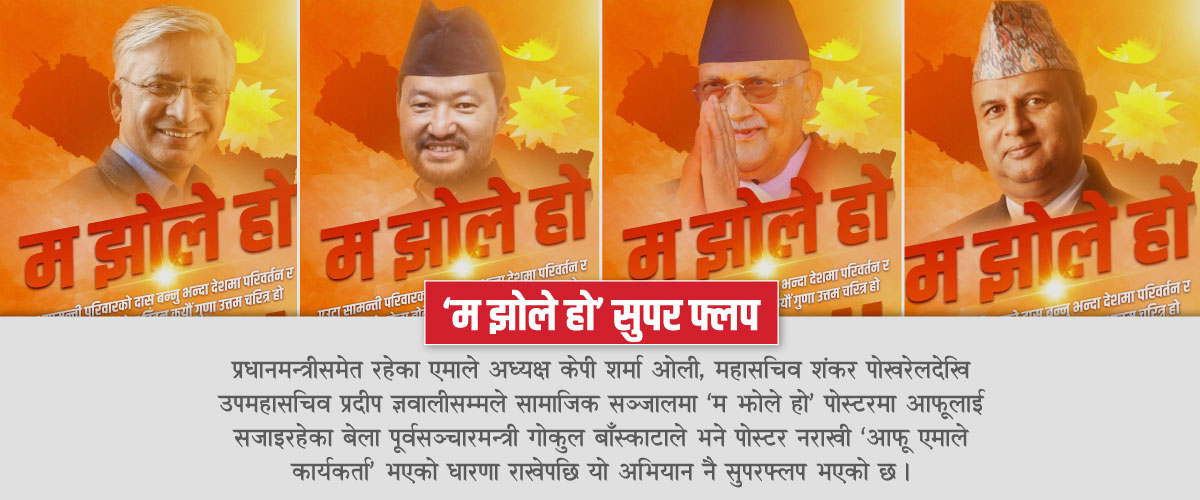 एमालेका केही नेता र कार्यकर्ताले ‘झोले हुँ’ भनिरहँदा पूर्वमन्त्री एवं नेकपा एमालेका पोलिटब्युरो सदस्य गोकुल बाँस्कोटाले पार्टीद्वारा संचालित ‘म झोले हो’ अभियान अस्वीकार गरिदिए । प्रधानमन्त्रीसमेत रहेका अध्यक्ष ओली, महासचिव शंकर पोखरेलदेखि उपमहासचिव प्रदीप ज्ञवालीसम्मले सामाजिक सञ्जालमा ‘म झोले हो’ पोस्टरमा आफूलाई सजाइरहेका बेला पूर्वसञ्चारमन्त्री बाँस्कोटाले भने त्यस्तो तस्बिर नराखी आफू एमाले कार्यकर्ता भएको धारणा राखेपछि यो अभियान सुपर फ्लप भयो ।