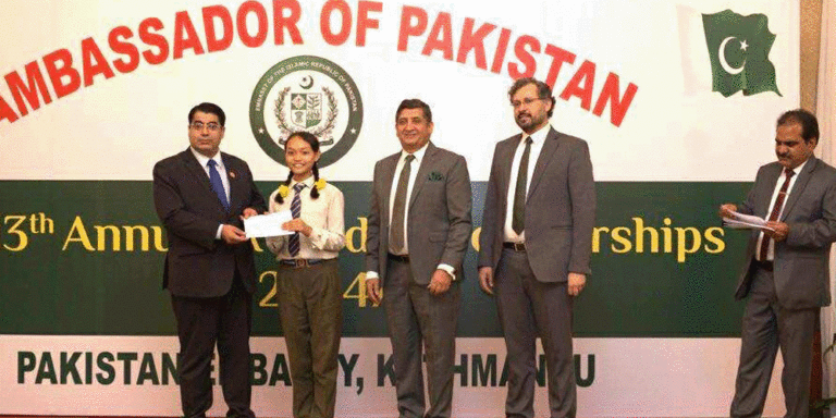 काठमाडौं । पाकिस्तान दूतावास, काठमाडौंले आज र्याडिसन होटलमा १३औँ वार्षिक पाकिस्तान राजदूत छात्रवृत्ति पुरस्कार समारोह आयोजना सम्पन्न गरेको छ । समारोहमा नेपाल परिवार पार्टीका अध्यक्ष तथा सांसद माननीय एकनाथ ढकाल प्रमुख अतिथिको सम्पन्न भएको हो । उनले देशभरका १०२ विद्यालयबाट छनोट गरिएका १९५ जना उत्कृष्ट नेपाली विद्यार्थीहरूलाई “पाकिस्तान राजदूत छात्रवृत्ति” प्रदान गरे ।