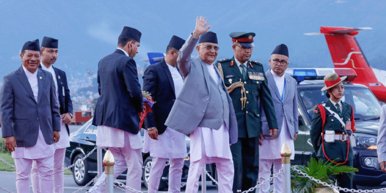 त्रिभुवन अन्तर्राष्ट्रिय विमानस्थलको अति विशिष्ट कक्षमा उपप्रधानमन्त्री तथा सहरी विकासमन्त्री प्रकाशमान सिंह, गृहमन्त्री रमेश लेखक, पर्यटनमन्त्री बद्री पाण्डेलगायतले प्रधानमन्त्री ओलीलाई बिदाइ गरे । नेपाली सेनाको टुकडीले उनलाई सम्मान गारद सलामी अर्पण गरेको थियो ।
