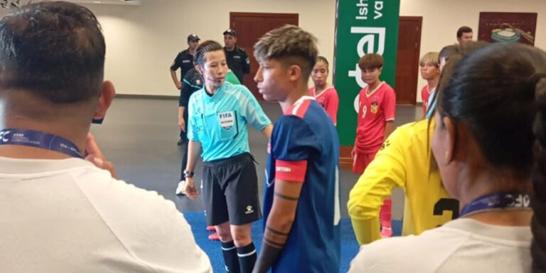 खेल सुरु हुनु करिब एक घण्टा अगाडि अखिल नेपाल फुटबल संघ (एन्फा)ले सार्वजनिक गरेको प्लेइङ ११ मा रेनुका नगरकोटेलाई कप्तान तोकिएको थियो । तर यसको एक घण्टा बित्न नपाउँदै कप्तानको आर्म ब्यान्ड साम्बलाई दिइएको छ।