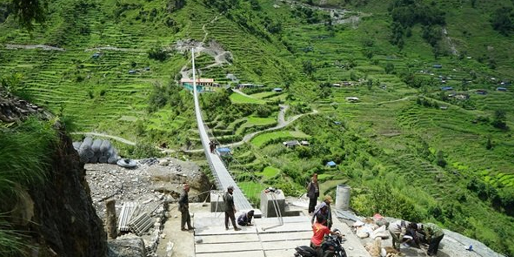 म्याग्दी । धौलागिरि गाउँपालिका–३ मुना फलीयागाउँ र दर जोड्ने दरखोलामाथि रु दुई करोड ३१ लाख ३६ हजार ७५० को लागतमा ३६६ मिटर लामो झोलुङ्गे पुल निर्माण भएको छ ।