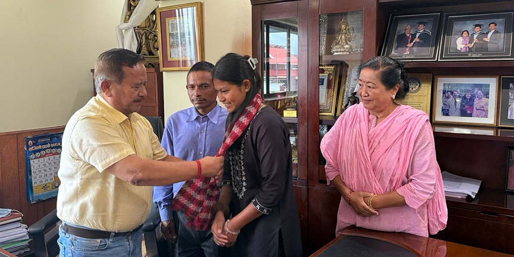 बिहीबार गोमालाई भाटभटेनीस्थित आफ्नै कार्यालयमा बोलाएर अध्यक्ष गुरुङ र श्रीमती सावित्री गुरुङले एक लाख रुपैयाँ नगद, एउटा ल्यापटप र सम्मानपत्रसहित सम्मान गरेका छन्।