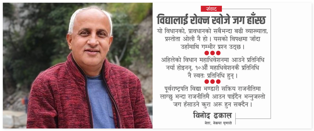 पूर्वराष्ट्रपति भण्डारीको राजनीतिमा पुनरागमन, सक्रियता, एमालेमा उत्पन्न तरंग, विधान महाधिवेशनलगायतका विषयमा एमालेका नेता विनोद ढकालसँग दृष्टिले गरेको कुराकानीको सम्पादित अंश :
