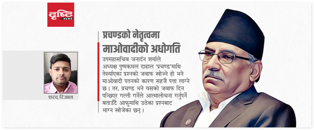 माओवादी आन्दोलनको उत्थानमा प्रचण्डको सकारात्मक भूमिका रहेकै हो । माओवादी युद्ध हुँदै शान्तिपूर्ण राजनीतिमा आगमनको सुरुवातमा उनकै नेतृत्वमा पहिलो पार्टी बन्यो । तर त्यसयता उनकै नेतृत्वले किन जोगाउन सकेन ? त्यसयता गुमाएको मत र जनविश्वासप्रति प्रचण्ड जवाफदेही बन्नुपर्छ कि पर्दैन ? ‘एक झुटलाई छोप्न हजारौँ झुट बोल्नुपर्छ’ भनेझैँ प्रचण्डले पार्टीमा नीतिगत प्रश्न उठाउनेलाई विभाजनको हल्ला फैलाएर निरुत्साहित गर्ने प्रयत्न गर्दै आएका छन् ।